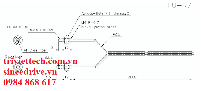 - Đường kính trục quang: Truyền tải: ø 1 Thu nhận: ø 3.2