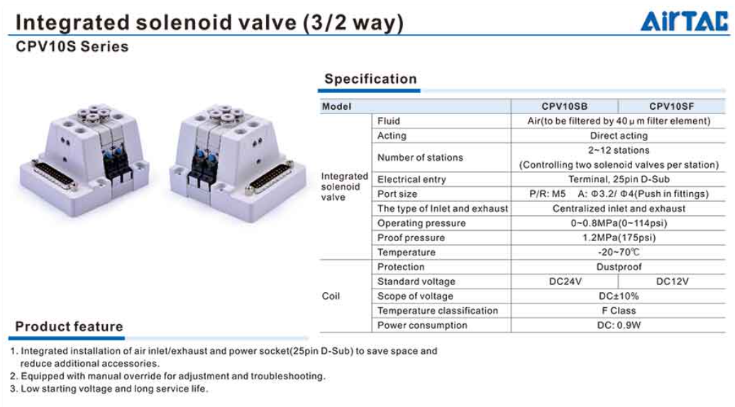 1. Mô tả sản phẩm Van điện từ tích hợp Airtac CPV10S